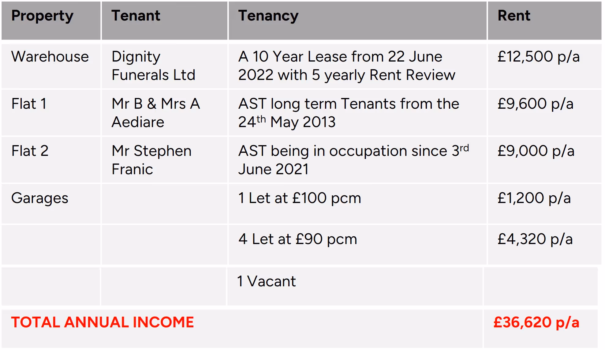 Garages – these are presently all tenanted. One Garage will be available upon completion, as the owners currently occupy Garage 4, which they will be vacating.