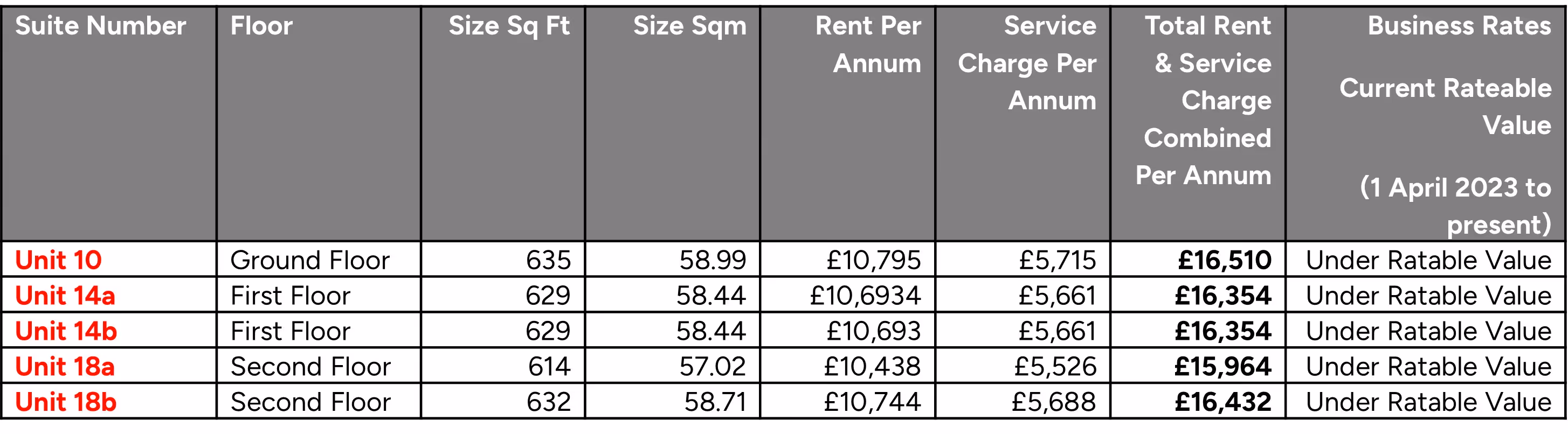 Most Units are under the £12,000 threshold for Business Rates.